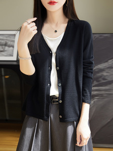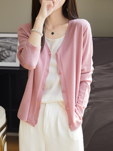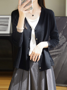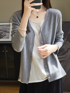 テンセル素材のフェイクツーピースカーディガン、薄手のゆったりニット、アウター、ブラウス、新作ジャケット、トップス、エアコンシャツ