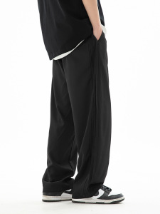 男性用クールアイスシルクカジュアルパンツ、ゆったり、軽く、通気性のあるエアコンパンツ、夏用サイドルーズリーフデザインドレープパンツ