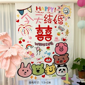 ドーパミン結婚式のハッピーワード吊り布結婚式の部屋のレイアウト婚約バナー装飾リビングルーム結婚式のドレッシングガウンの背景写真小道具