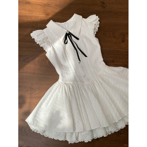 法式温柔风设计感蝴蝶结系带连衣裙女2025夏季新款气质甜美蓬蓬裙