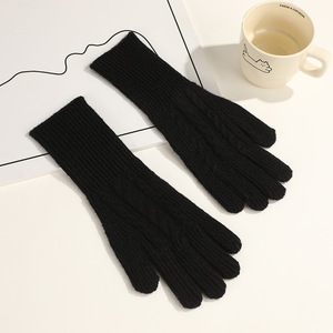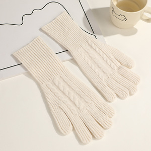 纯色羊毛手套一体成型绞花女秋冬季新款百搭保暖防风触屏针织手套