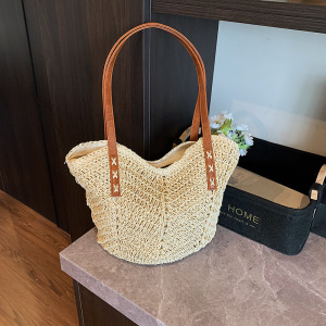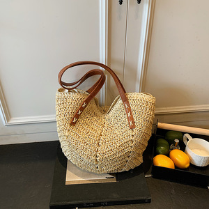 编织草编包包女大容量2025新款夏季藤编法式单肩包海边沙滩托特包