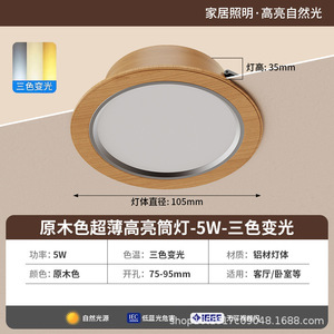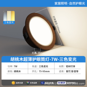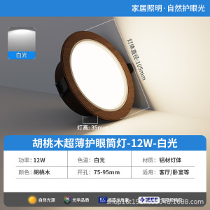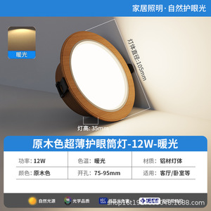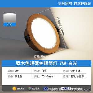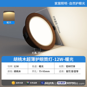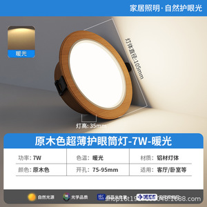 原木纹筒灯复古中式胡桃木客厅小吸顶明装可调角度led全光谱筒灯