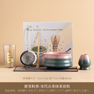 跨境日式陶瓷抹茶碗抹茶套装百本立茶筅立渐变釉窑变宋蕴抹茶套装