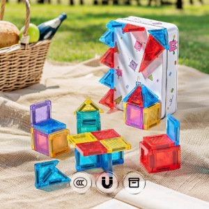 国境を越えた子供用カラーウィンドウ鉄箱ミニ磁気ピース 磁気ブロックセット組み立て式知育玩具