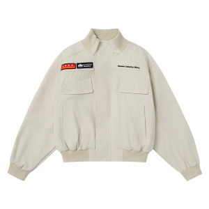 2025春秋季新款刺绣工装夹克男女立领休闲复古外套日系宽松上衣潮