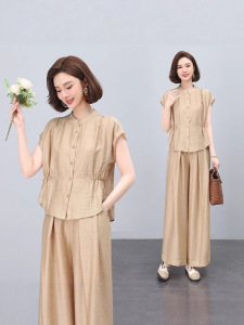 2025大码薄款休闲时尚套装夏季新款短袖宽松显瘦洋气阔腿裤两件套