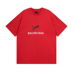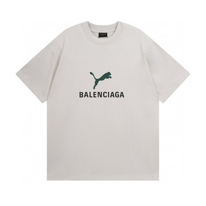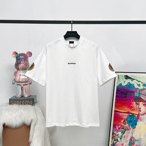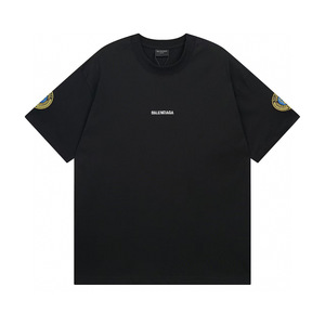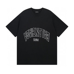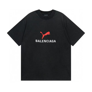 クロスボーダー高バージョンパリBの新しいプリント刺繍ウォッシュ加工とダメージ加工のユニセックストレンディな半袖Tシャツ