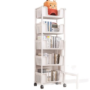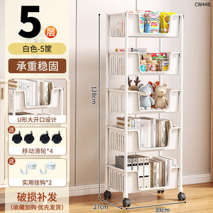 【热卖款】4筐1板5层白镂空大书架+万向轮
