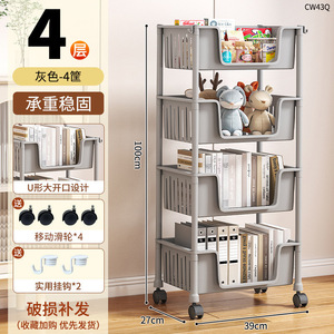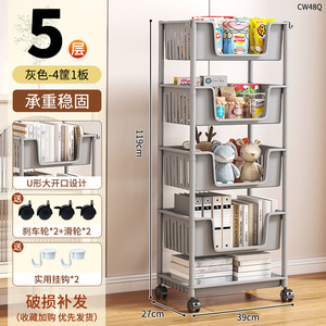 书架落地小推车置物架家用桌边可移动书包收纳架学生宿舍储物架子
