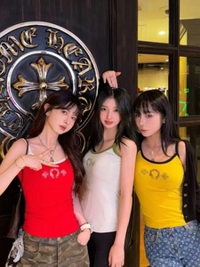 25SS YBオープン/ニッチデザイン初秋ローラーシリーズアメリカンコントラストプリントホットガールサスペンダーから始める/ 90% off