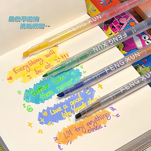 斧头+圆头双头叠色荧光笔高颜值荧光标记笔学生彩色划重点手账笔