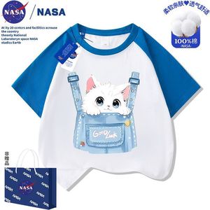 NASA 子供用子猫プリント漫画ラグラン半袖 T シャツ中型および大型子供服多用途純綿かわいい夏トップス