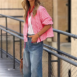 亚马逊独立站2025秋季新款格子短外套夹克宽松棒球外套