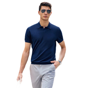 跨境爆款欧码大码针织短袖男POLO衫V领商务翻领T恤冰丝夏工厂批发