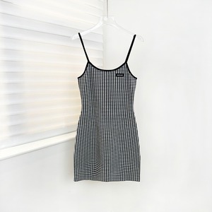 特价款不退换 深圳南油25夏季miu家纯欲气质显瘦徽标格子吊带裙