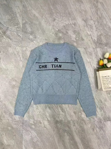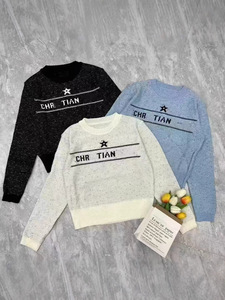 秋と冬の怠惰なスタイルのルーズセータージャケット女性の新しいネイビースタイル半袖レター五芒星セーター