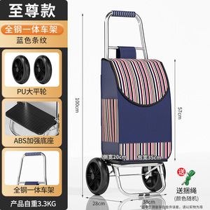 至尊款加厚不锈钢车架+水晶钢轴爬楼轮+加强底座-蓝色条纹✓☆