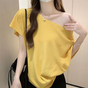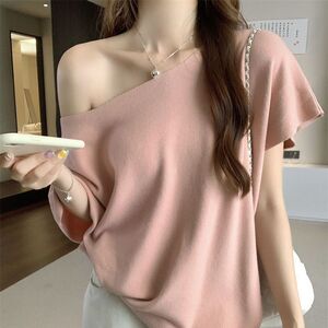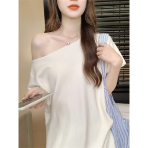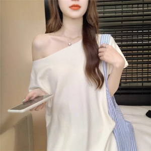 韩系不规则斜肩蝙蝠袖针织T恤女袭夏季新款慵懒风宽松显瘦上衣