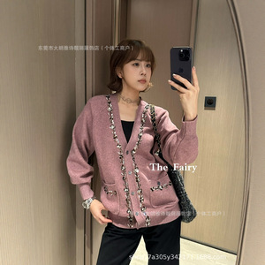 小香风高版本CH家25早秋新款重工亮片花朵V领针织开衫背心上衣女