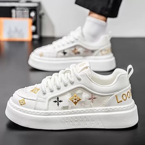 2025夏季新款舒适透气运动休闲鞋男款厚底增高拼色百搭印花休闲鞋