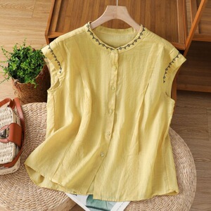 2025夏季新款文艺复古无袖吊带背心女装外穿刺绣背心棉麻气质小衫
