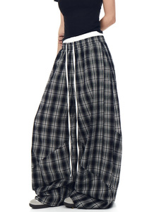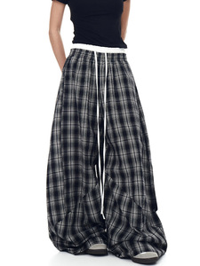 欧美春夏季新款潮流男女双腰头拼接阔腿裤爵士舞宽松直筒拖地裤子