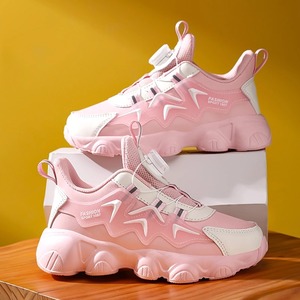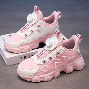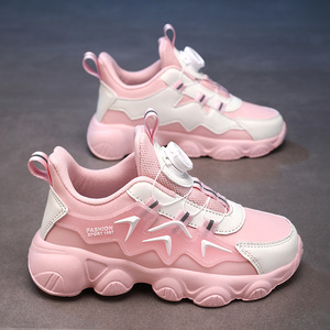 童鞋女童运动鞋2025新款皮面纽扣儿童鞋子秋季跑步防滑女孩老爹鞋