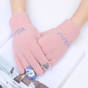 新款毛绒手套骑行手套针织手套秋冬女生可爱防寒触屏保暖手套