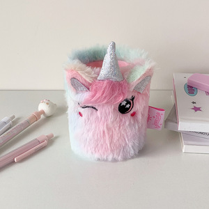 かわいい漫画ぬいぐるみペンホルダー学生クリエイティブデスクトップ文具収納ボックス diy 素材はさみ収納バケツの装飾品