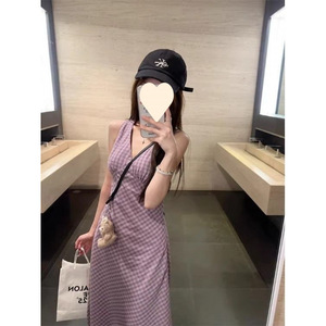 甜辣妹碎花V领无袖连衣裙女2025新款夏季收腰显瘦chic背心裙长裙