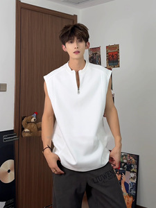 アメリカンハーフジップスポーツベストメンズ夏新作ハンサムハイエンドベストルーズカジュアルノースリーブTシャツ