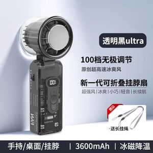 半导体制冷风扇冰敷高速涡轮挂脖USB充电折叠长续航透明机甲风扇