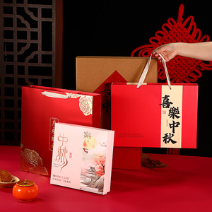 月饼盒;4粒福满中秋红色