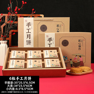月饼盒;复古风手工月饼正6粒