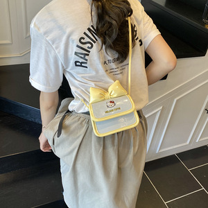 バッグガールクロスボディ小さなスクエアバッグかわいいリボン猫子供ショルダーコインアクセサリーリップスティックバッグ親子バッグ