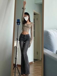 美式设计感毛边微喇叭牛仔裤女2025春秋季低腰辣妹修身拖地长裤潮