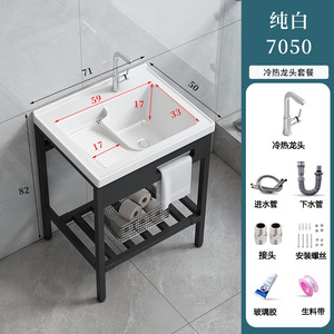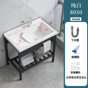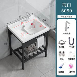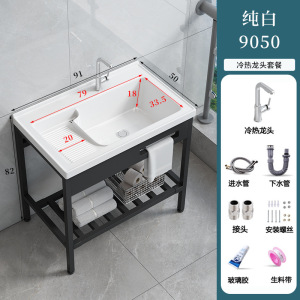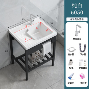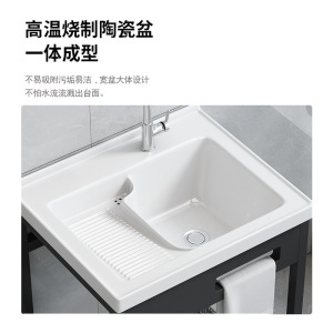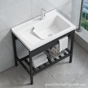 パンチフリーの床置きバルコニー洗濯洗面器、洗濯板付き、深めのセラミック洗面器、一体型洗面器、洗面器