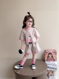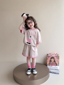 女童夏季运动套装2025新款宝宝卡通短袖短裤两件套儿童夏装薄衣服