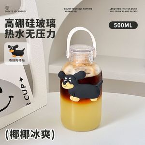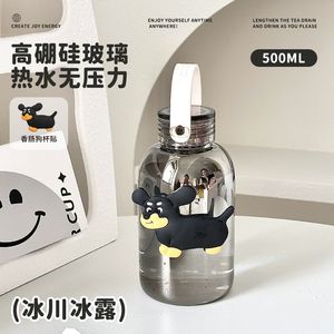 带提手随手杯时间刻度杯子女便携大容量水杯简约家用高硼硅玻璃杯