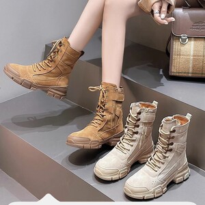 帆布马丁靴女2025新款复古户外单靴登山鞋沙漠靴厚底短靴
