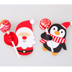 圣诞糖果礼物包装 圣诞老人企鹅棒棒糖纸卡 装饰卡片插牌50枚