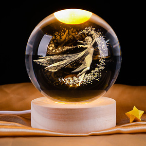 史迪奇拉布布卡通发光水晶球小夜灯礼物水晶摆件白水晶卡通水晶球