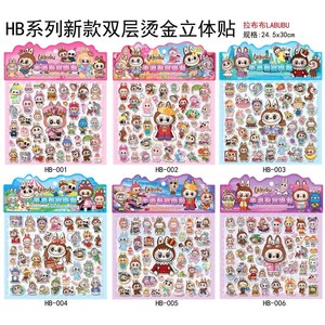 新款大号拉布布贴纸双层立体烫金泡泡贴纸装饰贴纸画儿童奖励贴画