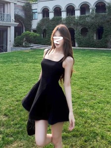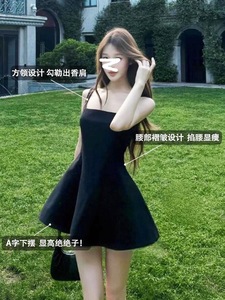 韩系黑色吊带连衣裙女2025夏日小洋裙千金绝美小裙子生日气质穿搭