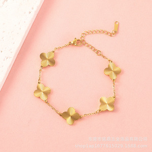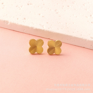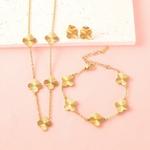 跨境热卖爆款手工批花18k炉内真金幸运草耳钉项链手链不锈钢套装