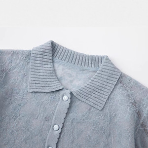2025秋季新款蝴蝶刺绣镂空短袖翻领针织开衫 2J3F520