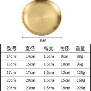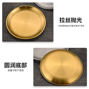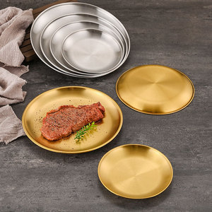 韩式304不锈钢圆盘 定制加厚金色托盘水果蛋糕骨碟烤肉盘子餐具