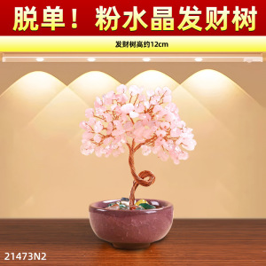粉水晶聚宝盆发财树,桃花满满早脱单