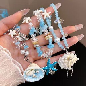 海边度假风可爱珍珠贝壳海星串珠项链女ins仙女小众男锁骨链配饰